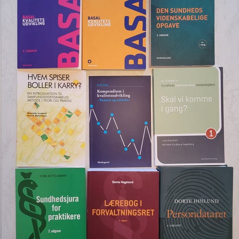 Bøger til sundhedsadministrativ koordinator uddannelsen. Pris for bøgerne står ved hvert billede. Bøgerne er uden overstregninger