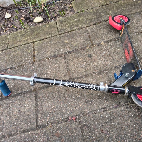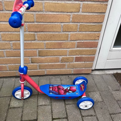 Marvel Spider-Man løbehjul til børn i rød og blå farve. Løbehjulet har tre hjul for stabilitet og et Spider-Man motiv på styret og fodpladen. Designet til børn med fokus på sikkerhed og leg.