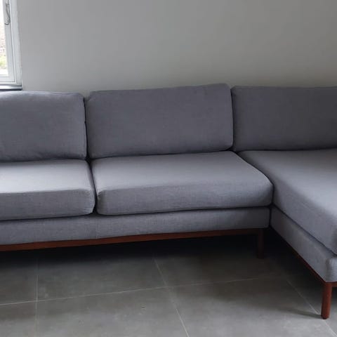 Lækker støvet blå Astha Chaiselong sofa fra Sofacompany