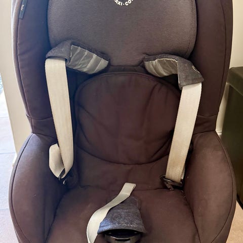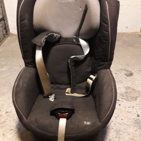 Stolen kan lænes tilbage så barnet lettere kan falde i søvn i stolen. Stolen har stået i en udestue hvor den har fået fugt - den er efterfølgende rengjort men man kan godt se lettere misfarvning i selen (se billedet). Stolen er fuld funktionsdygtig og har ikke været udsat for uheld. 9-18 kg.