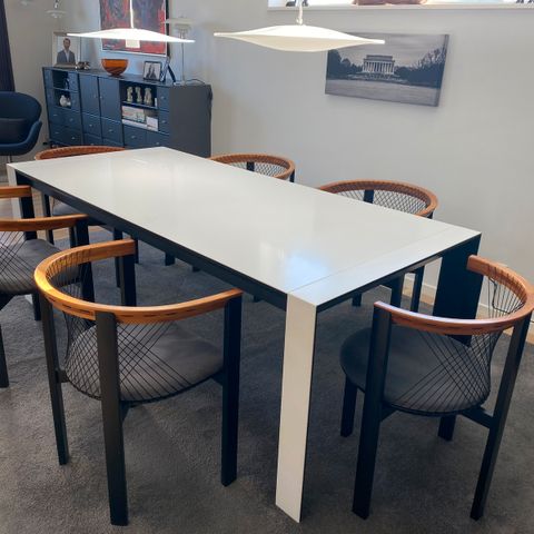 Vi sælger vores smukke bord fra Naver Collection, da vi har fået andre behov. Bordet er brugt sparsomt de seneste 4 måneder. Før det har det stået i en lejlighed, der er brugt en håndfuld gange om året i 2 år. Derfor fremstår bordet i rigtig flot stand. Nypris for dette bord er 41.169,00 kr.