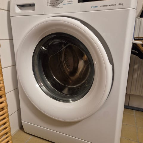 Whirlpool Frontbetjent vaskemaskine med modelnummer FWG 81484 WE EU. Maskinen er fremstillet til standard vaskebehov og har en kapacitet og funktionalitet til almindelig husholdningsbrug.