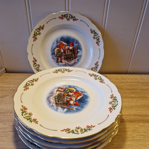 Gammeldags jul - 6 Dessert tallerkener fra Firkløveren