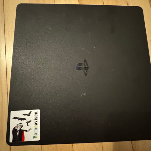 Playstation 4 spillekonsol i sort farve med to trådløse controllere. Inkluderer forskellige spil som The Crew, Sims 4, Lego City, Need for Speed Heat, FIFA 19, Hulk, Minions, og flere. Konsollen leveres med nødvendige kabler til tilslutning.