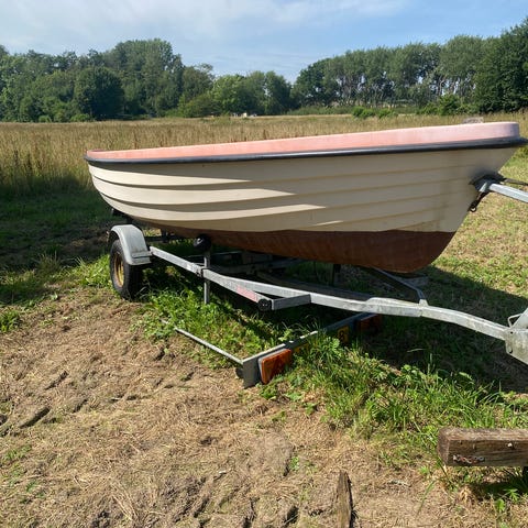 Snipe Jolle, rød. Båden har en åben cockpit og sejles af to personer. Glasfiber, ej defekt. Afhentes i Fårevejle.