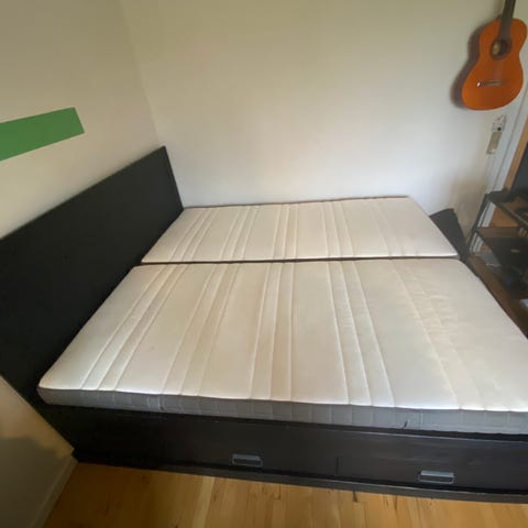Sælger denne seng, som både kan anvendes som enkeltseng eller dobbelt seng.
