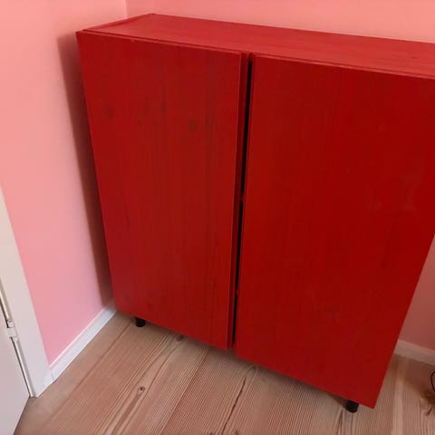 IKEA skab designet af Sven Ivar Dysthe, fremstillet i træ. Skabet har to døre og en åben hylde nederst, velegnet til opbevaring i hjemmet.