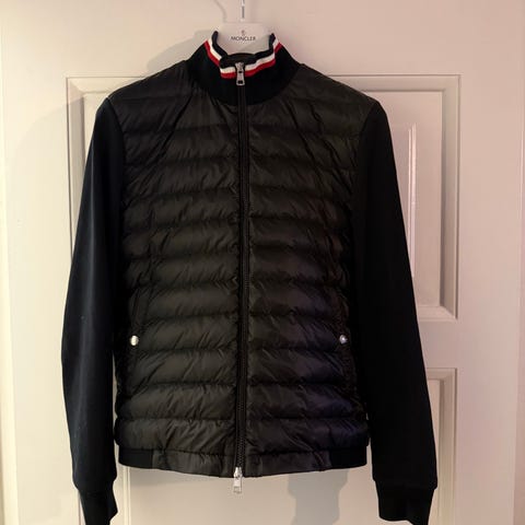 Original Moncler Cardigan med kvitering fra kaufmann. Der er ingen synlige brugsspor udover mærket på indersiden, hvor syning er gået op i den ene side(se billede). Dette er dog absolut ikke noget man kan se, når man har jakken på.