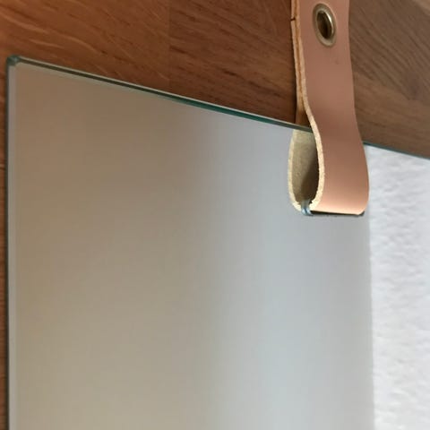 Spejl med læderstrop