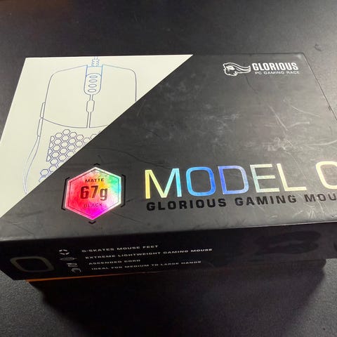 Glorious Model O gamingmus med USB-forbindelse. Musen har et perforeret design for lav vægt og bedre ventilation. Farven er sort, og den er beregnet til brug med computer som en del af tastaturer og mus-udstyr.
