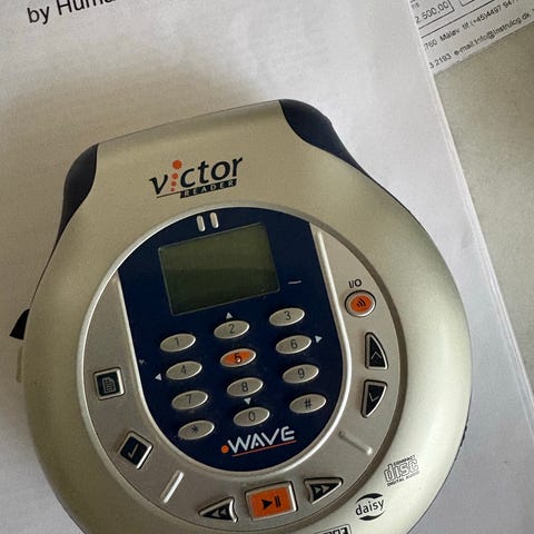 • Humanware Victor Reader Stratus 4 digital lydbogsspiller med indbyggede højttalere og hovedtelefonstik. Enheden har store taktile knapper og dansk taleindstilling. Designet til afspilning af bøger og musik via CD'er, med fokus på brugervenlighed og stabilitet.