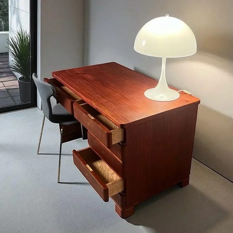 Et funktionelt og velafbalanceret skrivebord i klassisk dansk modernisme.
