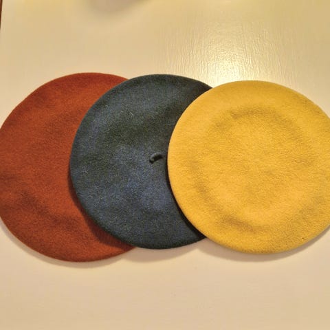 Alle i 100 % uld fra Mærket Kangol (se sidste foto). Alle i friske flotte farver. Den lerfarvede er mere rødbrun eller rustrød.
