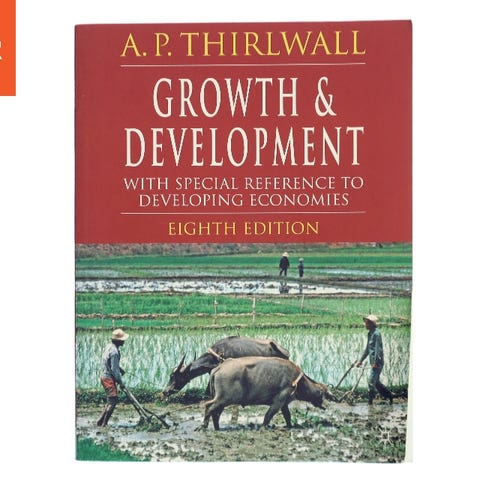 A.P. Thirlwall Growth & Development bog, ottende udgave, med fokus på økonomisk vækst og udvikling, særligt med reference til udviklingsøkonomier.