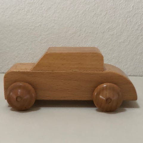 Kay Bojesen trælegetøj . Bil med 4 farvede figurer - Familien på tur.