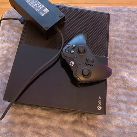 Xbox One S Xbox One konsol i hvid farve. Sælges med tre controllere i forskellige farver. Konsollen har HDMI-udgang og S/PDIF-udgang. Serienummer er 382157263348.