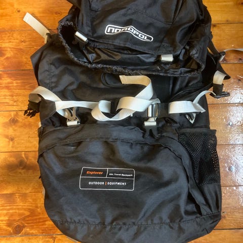 Rygsæk meget stor "NORDPOL 85" med mange lynlåslommer og mange stropper til at binde om liggeunderlag + sovepose mv.