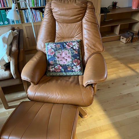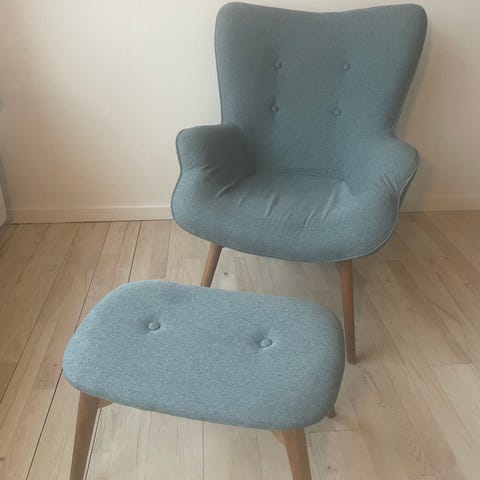 Fiks lille stol lidt slitage på armlæn ellers ok ingen huller god siddekomfort, skal afhentes i Egaa ved Aarhus