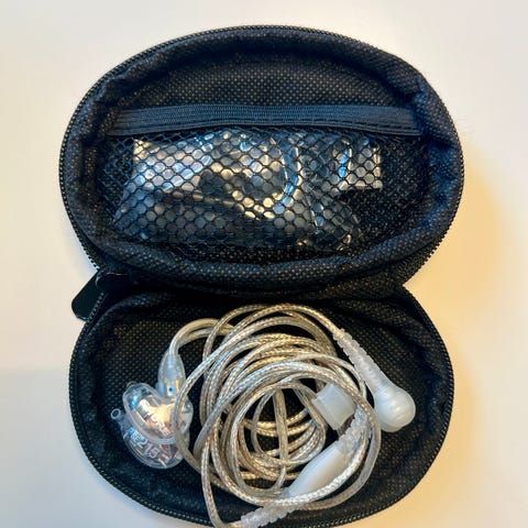 Shure SE215 in-ear høretelefoner med gennemsigtige kabler og ørepropper i forskellige størrelser. Leveres med opbevaringsetui og ekstra ørepropper for tilpasning og komfort.