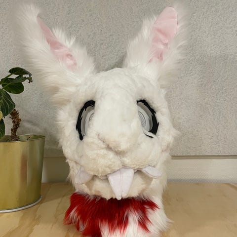DreamVision Creations Skulldog base with fur glued onto the mask and handsewn all together.