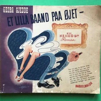 Et lilla baand på øjet, Georg Gjedde, genre: roman, Omslag og illustrationer af Børge Larsen.Lette brugsspor, Hasselbalchs Forlag, 1940, 155 sider.