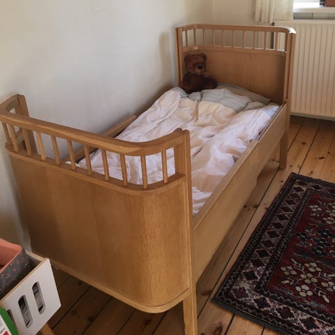 Lilleper-sengen i mørk grå. Min søn har brugt den ganske lidt. Den er i fin stand, og der medfølger madras! Sengen skal afhentes. Prisen kan forhandles. Den kan bruges som både barneseng og juniorseng.