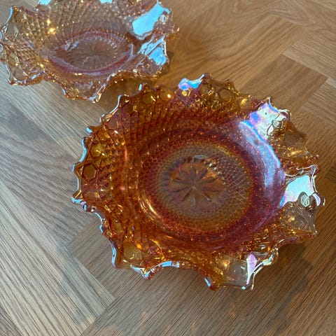Smukt sæt med 2 vintage glasfade i presset klart glas med klassisk stjernemønster.