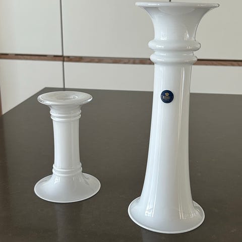 7 Holmegaard og Royal Copenhagen glas lysestager.