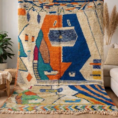 Ekseptionel stor marokkansk Boujad-tæppe – abstrakt multifarvet berber-kompos...