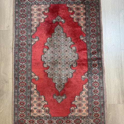 Håndvævet orientalsk tæppe i Buchara-design fra Pakistan, ca. 119 x 80 cm, uldonto bomuld. Klik på den blå "gå til varen" knap, for at købe eller byde på denne vare. Den samlede pris vil blive vist inden du afgiver dit bud.