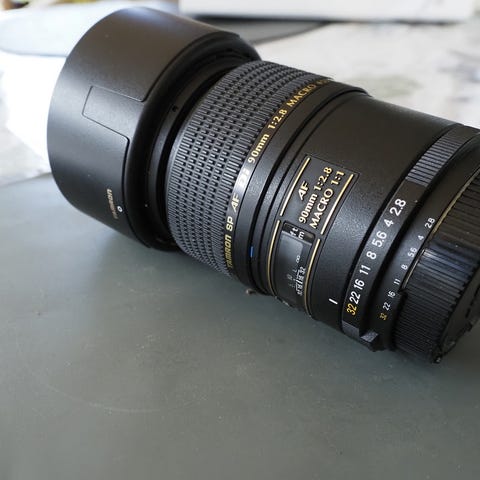 Tamron x Nikon F, SP 90mm f/2.8 1:1 Macro VC, USD diameter 58 mm, vægt 405 g, dimensioner 72x97, filterdiameter 55 mm