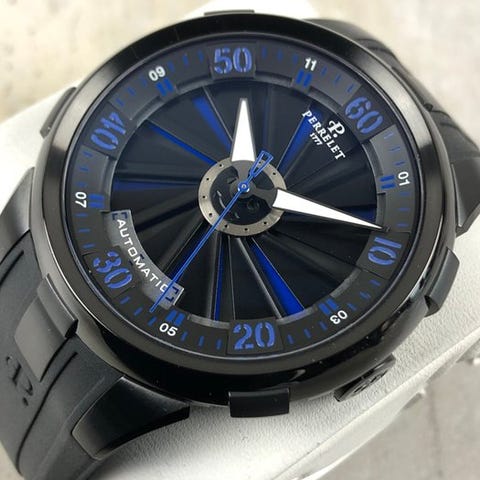 Perrelet Turbine XL Automatic, reference A1051/5, herreur i rustfrit stål med 48 mm kasse, automatisk urværk, sort urskive, sort gummirem, ubrugt tilstand, med original æske, original dokumenter og et års garanti. Klik på den blå "gå til varen" knap, for at købe eller byde på denne vare. Den samlede pris vil blive vist inden du afgiver dit bud.