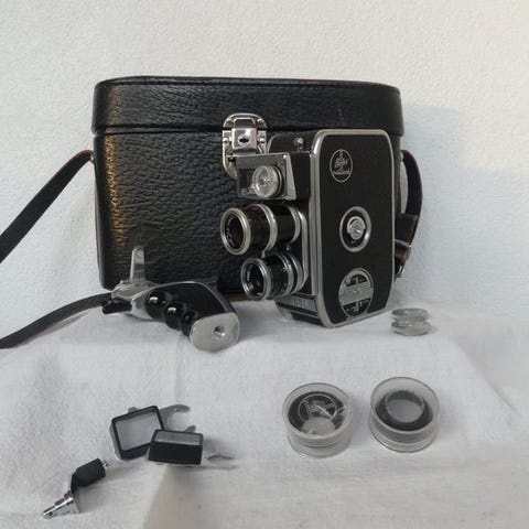 Tre 8 mm filmkameraer: et Beaulieu med zoomobjektiv Angenieux; et SANKYO i fremragende stand med det komplette opbevaringsetui; to BOLEX 150 i middelstand. Disse tre kameraer er ikke blevet testet. Ideelle for samlere.