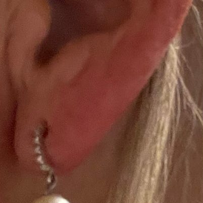 Ørestikker med stift og sommerfugl, udsmykket med firkløver i 18 karat hvidguld, prydet med perler og diamanter.