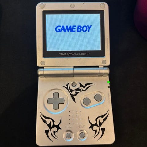 Selve konsollen er en original Game Boy Advance SP-enhed.