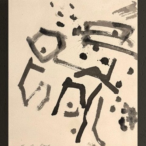 Originalværk på Arches-papir, udført af Hanna Ben-Dov i 1960'erne, denne blæktegning er fuldt ud en del af den lyriske abstraktionsbevægelse. Den afspejler en periode med stor kunstnerisk modenhed, hvor kunstneren udvikler et enkelt billedsprog baseret på gestus, rytme og lys.
