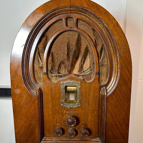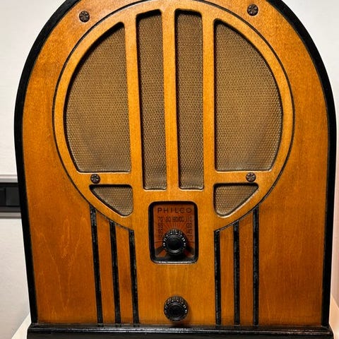 Radioen er en Magnadyne, bygget i Torino fra 1956 til 1957, med MW og to bånd af kortbølge og FM, fungerer. Den vil blive afsendt med sporing og forsikret.