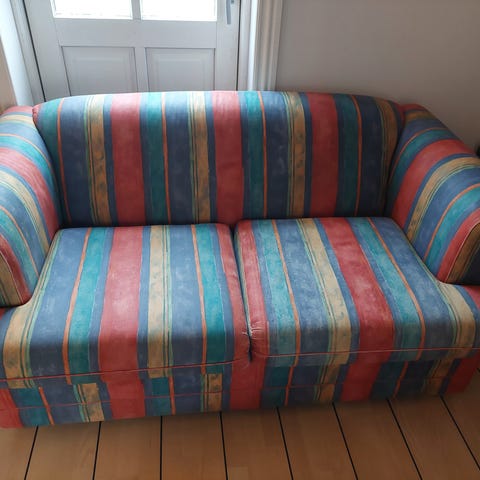 Retro 3 personers sofa med tilhørende stol.