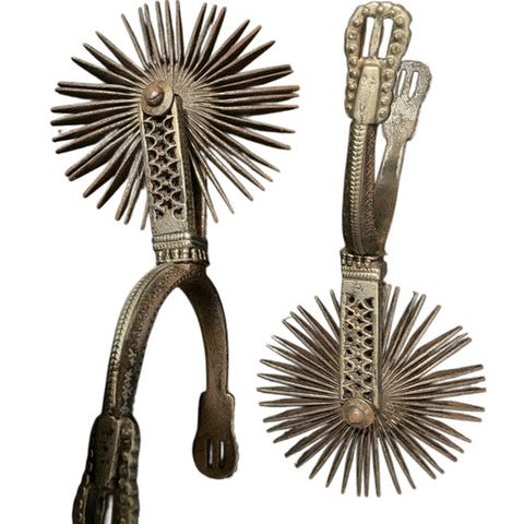 Et sæt huaso- eller gaucho-sporer, håndlavede, blev brugt af chilenske kvægdrivere.