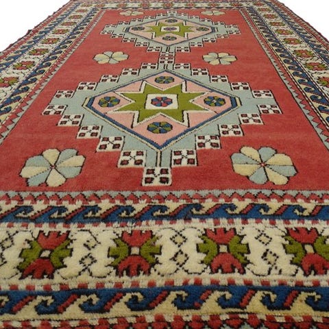 Dette er et håndknyttet østligt tæppe, lavet af holdbare, naturlige materialer. Måden det er vævet på, og mangfoldigheden i mønstrene gør dette tæppe til et unikum og understreger det autentiske og håndværksmæssige karakter.