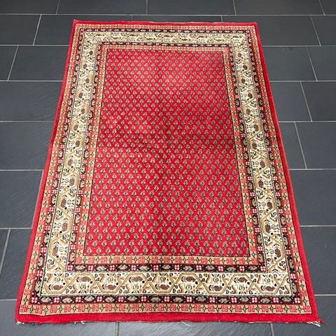 Indisk oprindelse Loribaft - Gereinigd håndknyttet tæppe af uld på bomuld, 200 x 141 cm, i meget god stand og professionelt renset med certifikat. Klik på den blå "gå til varen" knap, for at købe eller byde på denne vare. Den samlede pris vil blive vist inden du afgiver dit bud.