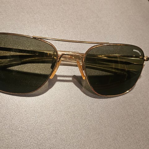 Solbriller herre, Randolph Engineering Inc, Originale pilot briller vistnok kendt fra TOP GUN lavet af Randolph Engineering Inc til det amerikanske militær. De er mærket COMMAND/USA 24K på højre ørepind. De er IKKE guld er jeg helt sikker på selvom en på Ebay påstår det.