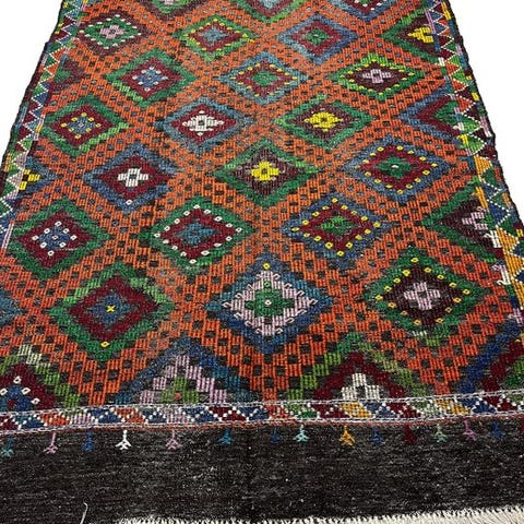 Kayserie Kilim er tæppe vævet i hånden af uld på uld, oprindelse Türkiye, model Kayserie, måler 130 cm x 72 cm, flerfarvet med Cappadocia-inspirerede motiver, fra sidste del af det 20. århundrede, i meget god stand og professionelt rengjort. Klik på den blå "gå til varen" knap, for at købe eller byde på denne vare. Den samlede pris vil blive vist inden du afgiver dit bud.