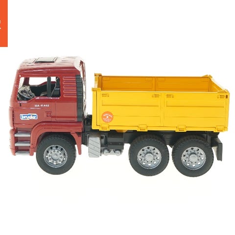 Bruder MAN lastbil legetøj i gul farve. Modellen har detaljeret kabine og chassis, med plads til anhænger. Velegnet til børn til leg og læring om lastbilens funktioner.