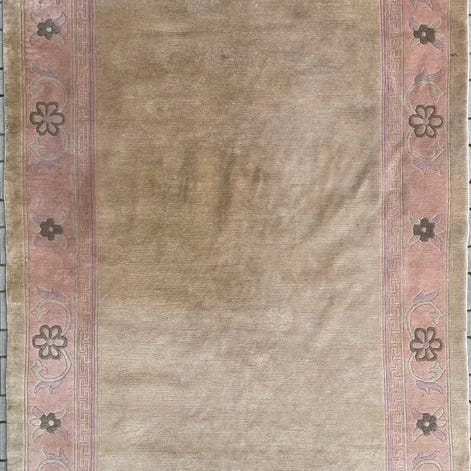 Pragtfuldt moderne håndknyttet tæppe fra Nepal, fremstillet af uld og viscose med et mønster inspireret af naturen. Størrelse 220x180 cm. Ca. farve grøn.