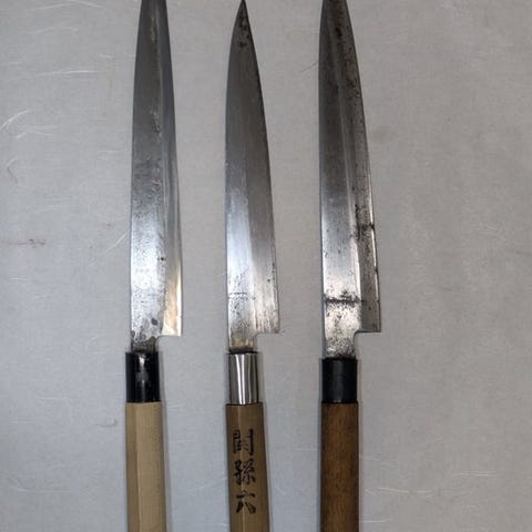Alle tre knive er signeret og fremstillet af velkendte japanske producenter, hvilket gør dette til et attraktivt sæt for samlere, håndværkere eller seriøse brugere af traditionelt japansk bestik.