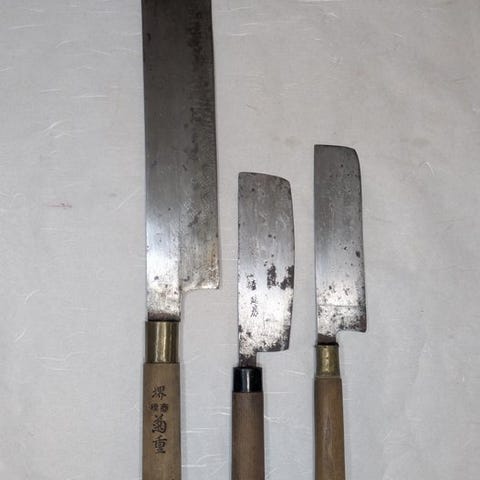 Sæt med 3 vintage traditionelle japanske Nakiri-knive – signerede blade.
