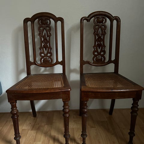 Stolene er i meget god stand og det samme er møbelstoffet der er velholdt med farverne i behold.