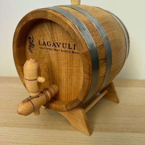 Jeg sælger en flot egbarrel, der er egnet til at fylde alkohol på, med et volumen på 5 liter.