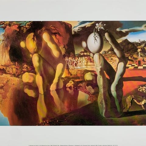 Denne litografi af Salvador Dalí dateres sandsynligvis til 1970'erne, en periode hvor den spanske surrealistiske kunstner udforskede forskellige trykteknikker for at sprede sin kunst. Værket viser karakteristiske elementer fra Dalís stil, med flydende og drømmeagtige former, der fremkalder bevægelse og kaos i en malstrøm, en kraftfuld havstorm.
